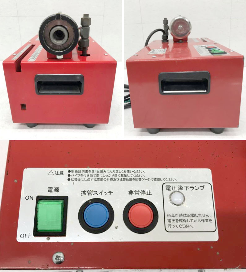 【商品特長】 従来の常識を覆す、高性能&コンパクトな可般型の油圧式拡管機。 本機械は配管用ステンレスパイプを拡管させる際に使用する工具です。 用途:水道配管用継ぎ手との接合部の形成 |