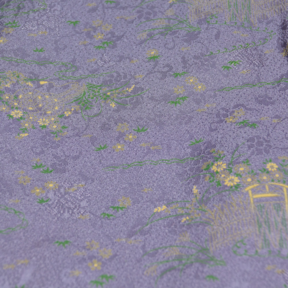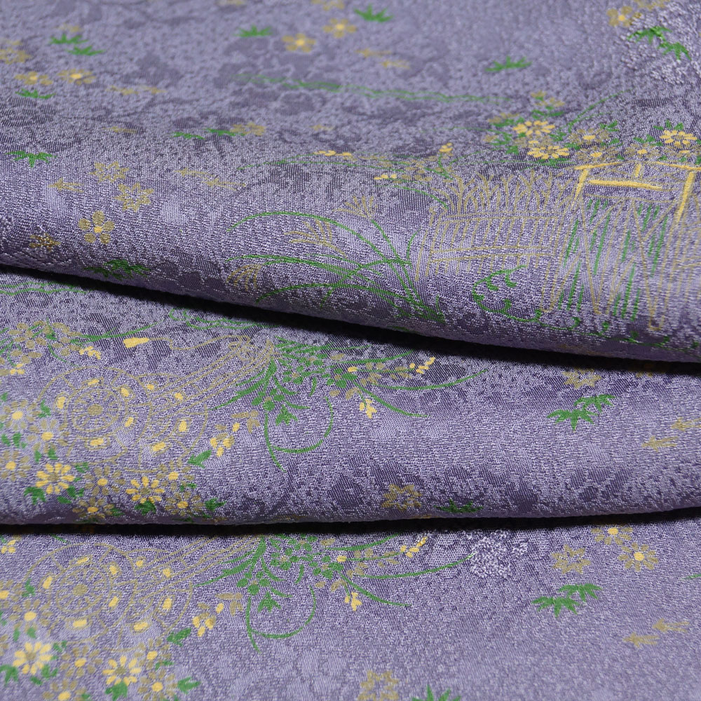 | 商品 説明 | 藤紫色系のちりめん地に、花車、花垣などの模様が染められた小紋です。 |
