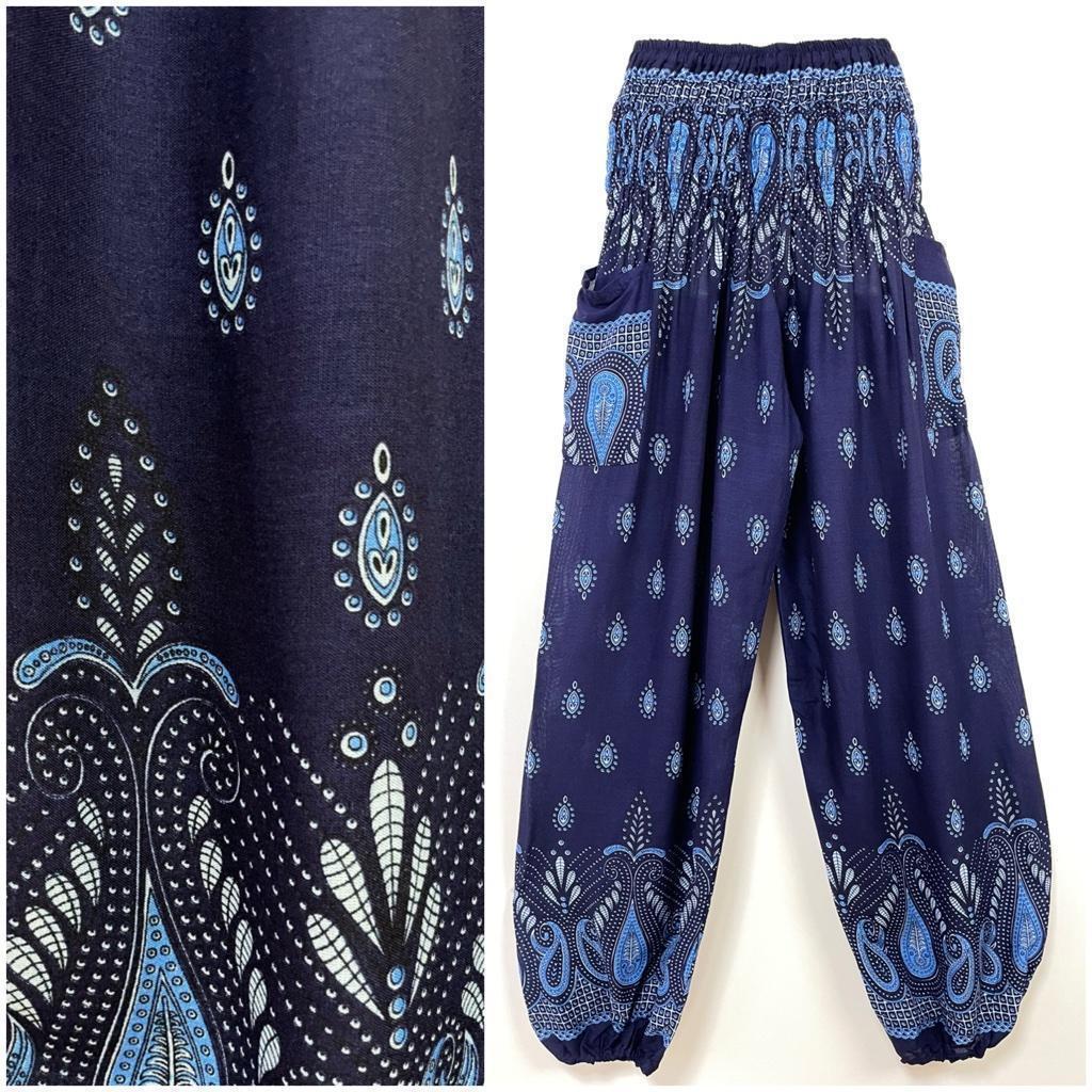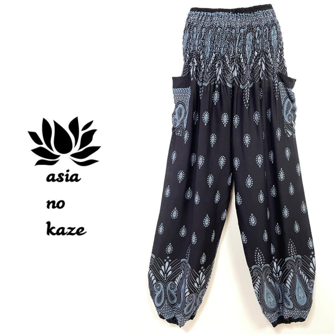 【新品】アラジンパンツ タイパンツ ヨガ タイマッサージ レーヨン サルエル 男女兼用【シャーリング】 170ネイビー Y177 收藏