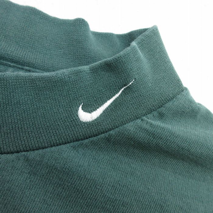 L/古着 ナイキ NIKE 長袖 ビンテージ Tシャツ メンズ 90s ワンポイントロゴ コットン モックネック ハイネック 緑 グリーン 收藏