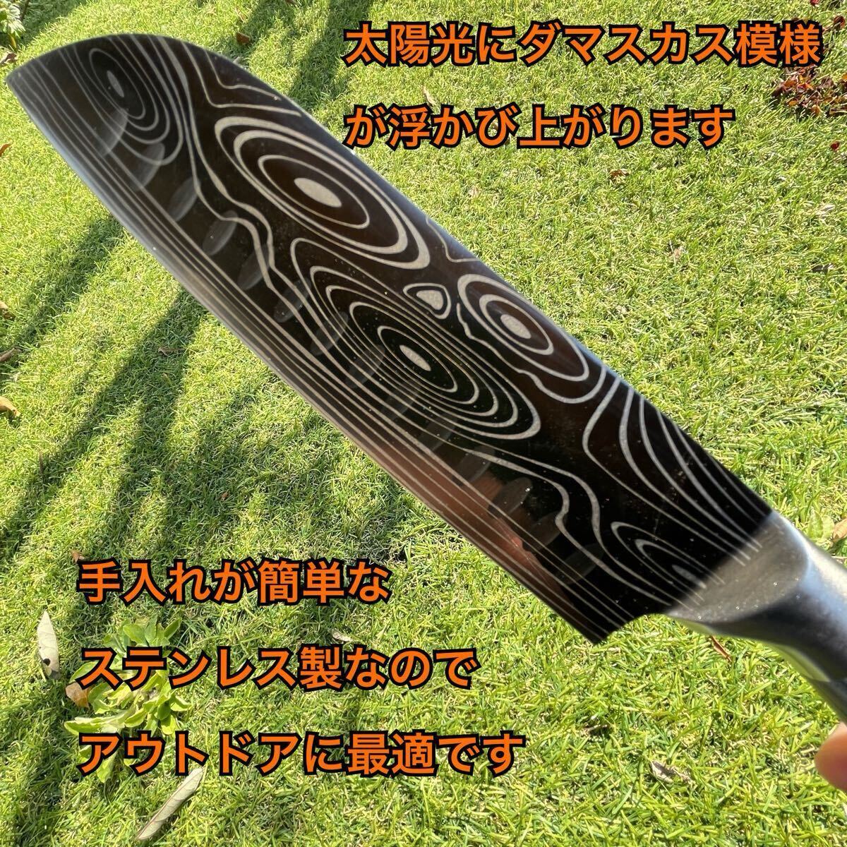 良い切れ味だけでなく、刀身をサンディングレーザーでダマスカス模様に仕上げており、美しい見た目も楽しめます。
