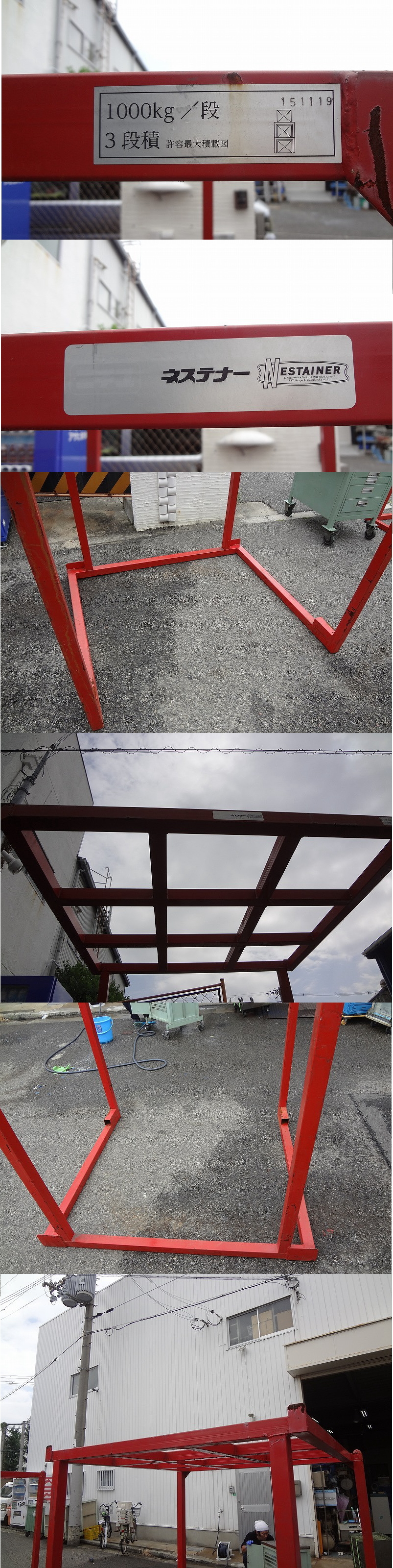 商品名 | ★Kマか3705 エレクター■ネステナー NESTAINER■1000㎏ 3段積■ネスティングラック 棚 倉庫 金属製 保管ラック 物流機器 来店 大阪 |