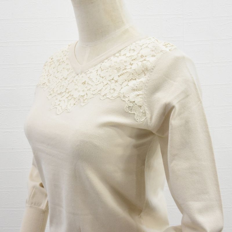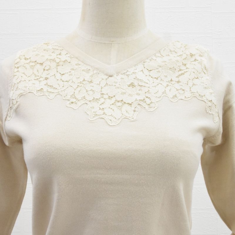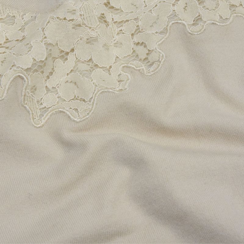 柔らかな風合いのニットにレースを組み合わせた上品なデザインで、オフィスからデイリーまで幅広く着用いただけます。