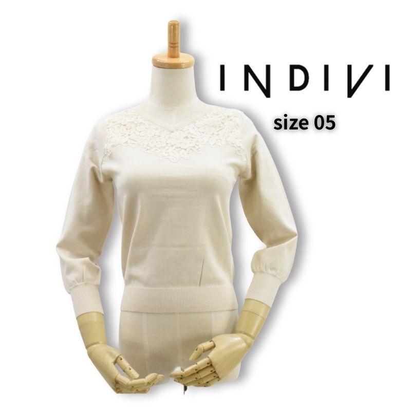 未使用品 インディヴィ レース切替 八分袖ニットプルオーバー サイズ05(S) ベージュ INDIVI 收藏