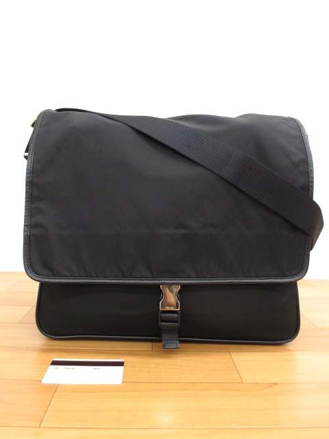 美品 プラダ V158 ナイロン×サフィアーノレザー メッセンジャーバッグ ショルダーバッグ