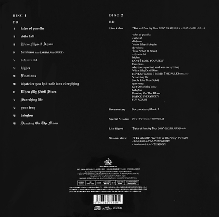 【内容】 MAN WITH A MISSIONの14年3月に発売された3rdアルバム『Tales of Purefly』のリリース10周年を記念したアニバーサリー・ボックス。「tales of purefly」、「evils fall」、「Wake Myself Again」他、全13曲収録。 Blu-ray Disc付き。完全生産限定盤/Blu-ray Disc+絵本型ストーリーブック+タオル+ステッカーセット+ポストカード付/BOX仕様 【CD】 『Tales of Purefly Complete Box』 1.tales of purefly[1:54] 2.evils fall[4:48] 3.Wake Myself Again[4:20] 4.database feat.TAKUMA(10-FEET)[3:58] 5.vitamin 64[4:32] 6.higher[4:11] 7.Emotions[4:43] 8.whatever you had said was everything[4:37] 9.When My Devil Rises[4:16] 10.Searching life[4:01] 11.your way[4:26] 12.babylon[6:35] 13.Dancing On The Moon[4:23] 【BD】 『Tales of Purefly Complete Box』 “Tales of Purefly Tour 2014" 05.31 幕張メッセ国際展示場1~3ホール 1.tales of purefly (Live Video)[4:17] 2.evils fall (Live Video)[4:48] 3.distance (Live Video)[6:04] 4.Wake Myself Again (Live Video)[4:19] 5.database (Live Video)[3:54] 6.Take What U Want (Live Video)[4:37] 7.vitamin 64 (Live Video)[11:37] 8.higher (Live Video)[4:13] 9.DON'T LOSE YOURSELF (Live Video)[4:56] 10.Emotions (Live Video)[7:03] 11.whatever you had said was everything (Live Vid[4:46] 12.When My Devil Rises (Live Video)[4:17] 13.NEVER FXXKIN' MIND THE RULES (ENG.ver) (Live V[3:55] 14.Searching life (Live Video)[10:24] 15.Smells Like Teen Spirit (Live Video)[7:32] 16.your way (Live Video)[4:24] 17.Get Off of My Way (Live Video)[4:37] 18.babylon (Live Video)[8:40] 19.Dancing On The Moon (Live Video)[10:46] 20.DANCE EVERYBODY (Live Video)[4:17] 21.FLY AGAIN (Live Video)[5:51] 22.Documentary Movie 2 (Documentary)[7:25] 23.ジャン・ケン・ジョニーのガウさんぽ (Special Mission)[7:44] 24.“Tales of Purefly Tour 2014" 05.25 大阪城ホール (Live Digest)[6:03] 25.“FLY AGAIN" “Get Off of My Way" ダンス講座 (Mission Movie)[6:46] 26.箱の中身はなんだろな!? MISSION!! (Mission Movie)[7:22] 27.スーパーウルトラクイズMISSION (Mission Movie)[7:05] 【特典内容】 フード付きタオル/ステッカー5種セット/ポストカード | |||||||||||||||||||||||||||||||||||