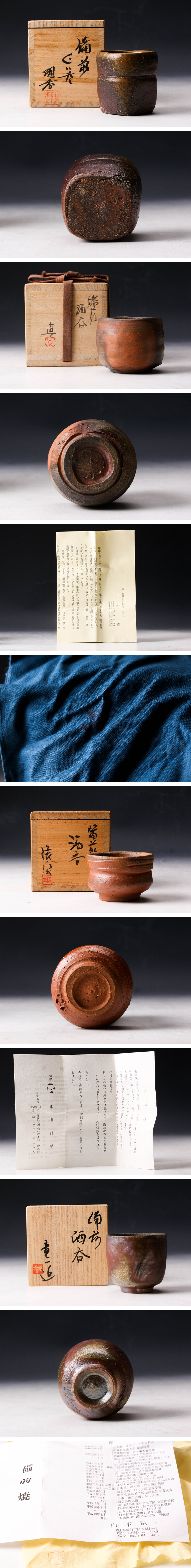 【佳香】中村真 山本竜一 梅野陶香 永末隆平 備前酒呑 ぐい呑 四点セット 共箱 本物保証 收藏