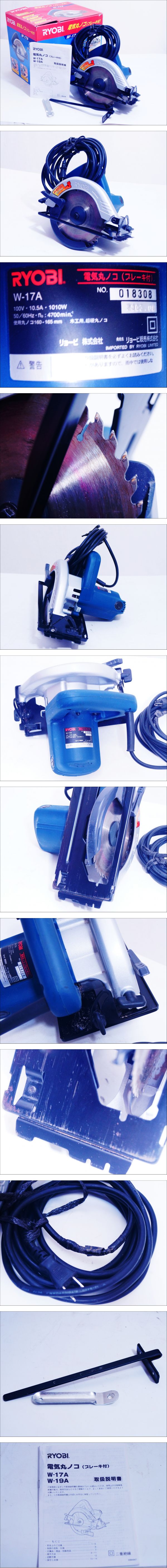 動作確認済★RYOBI リョービ W-17A 電気丸ノコ☆箱付き ★型番: W-17A ★動作確認済み ★付属品:取扱説明書・箱・ソーガイドフェンス・六角 ★状態:中古品 使用の傷、汚れがあります。又、コードに絶縁テープで修理箇所が1ヶ所有りますので、画像をご確認くださいませ。 最近まで、使用していました。 | |||