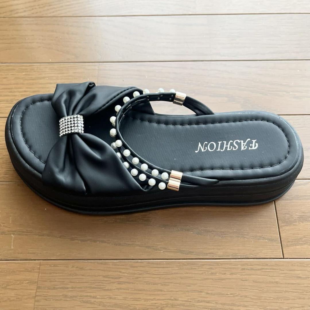 【大人可愛い×上品】リボン&パール付き厚底サンダル♪