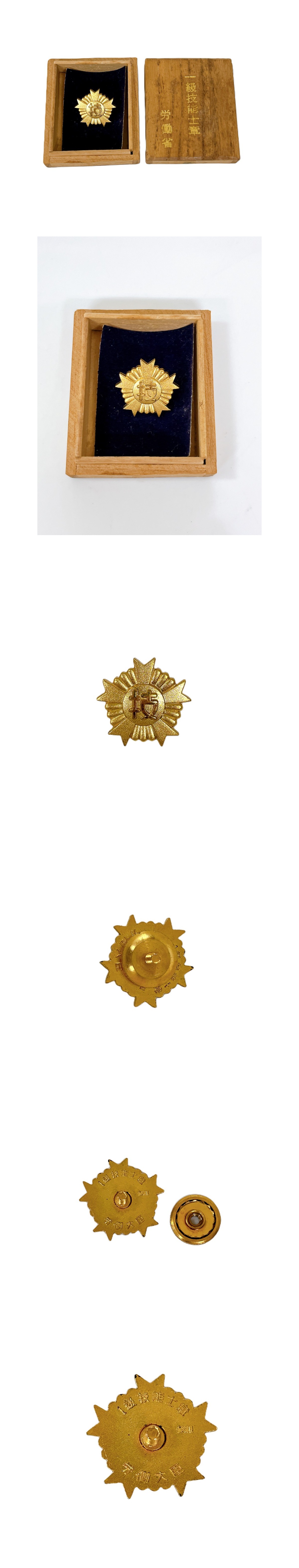 一級技能士章 純銀 労働省 ピンバッジ 桐箱付 襟章 ゴールドカラー 徽章 勲章 | |