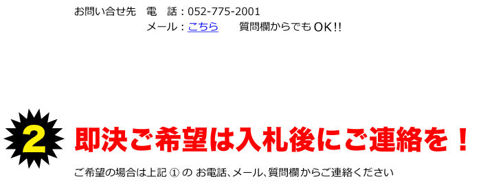 誠に勝手ではございますが、トラブル回避のため オークション終了間際のご入札は取り消し処理をさせていただいております。 お急ぎの方はお電話にてお問い合わせください。 |