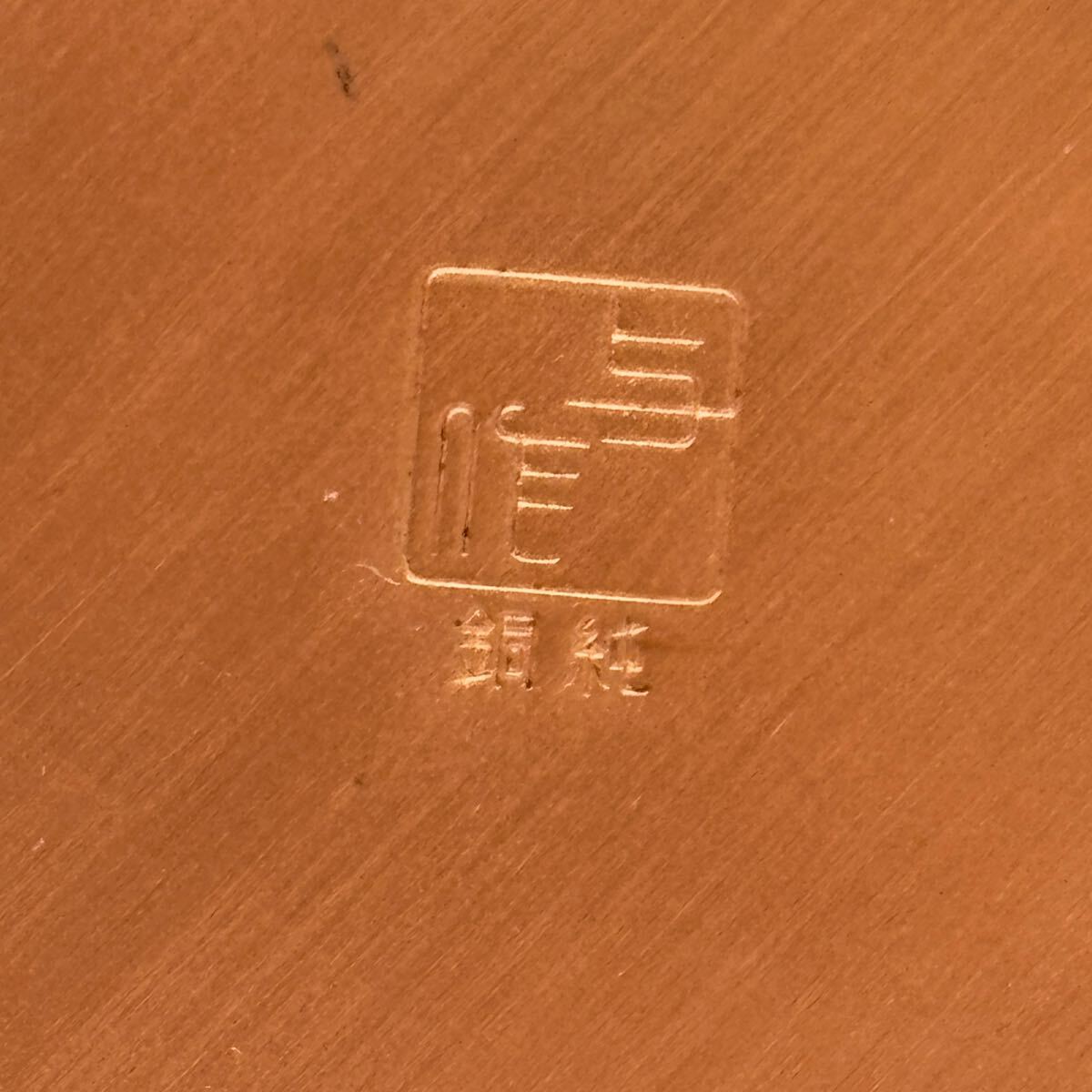 ∞ 純銅 装飾トレイ 与印 唐草文様 彫金 飾り皿 お盆 銅純 直径約34cm 刻印有 状態写真参照 直接引取り大歓迎 になります。