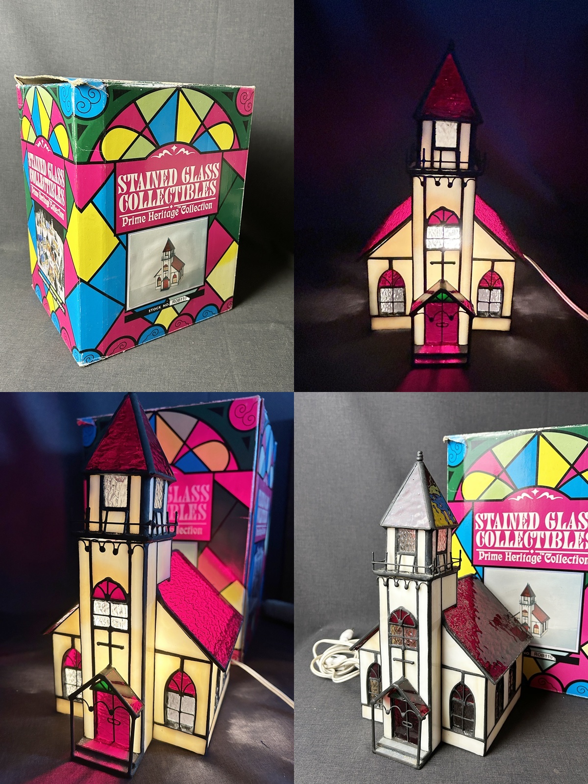 ステンドグラス ハウスランプ◇家型/照明/ライト/スタンド/インテリア/家電/工芸ガラス/硝子/置物/飾り物/雑貨/古道具 收藏