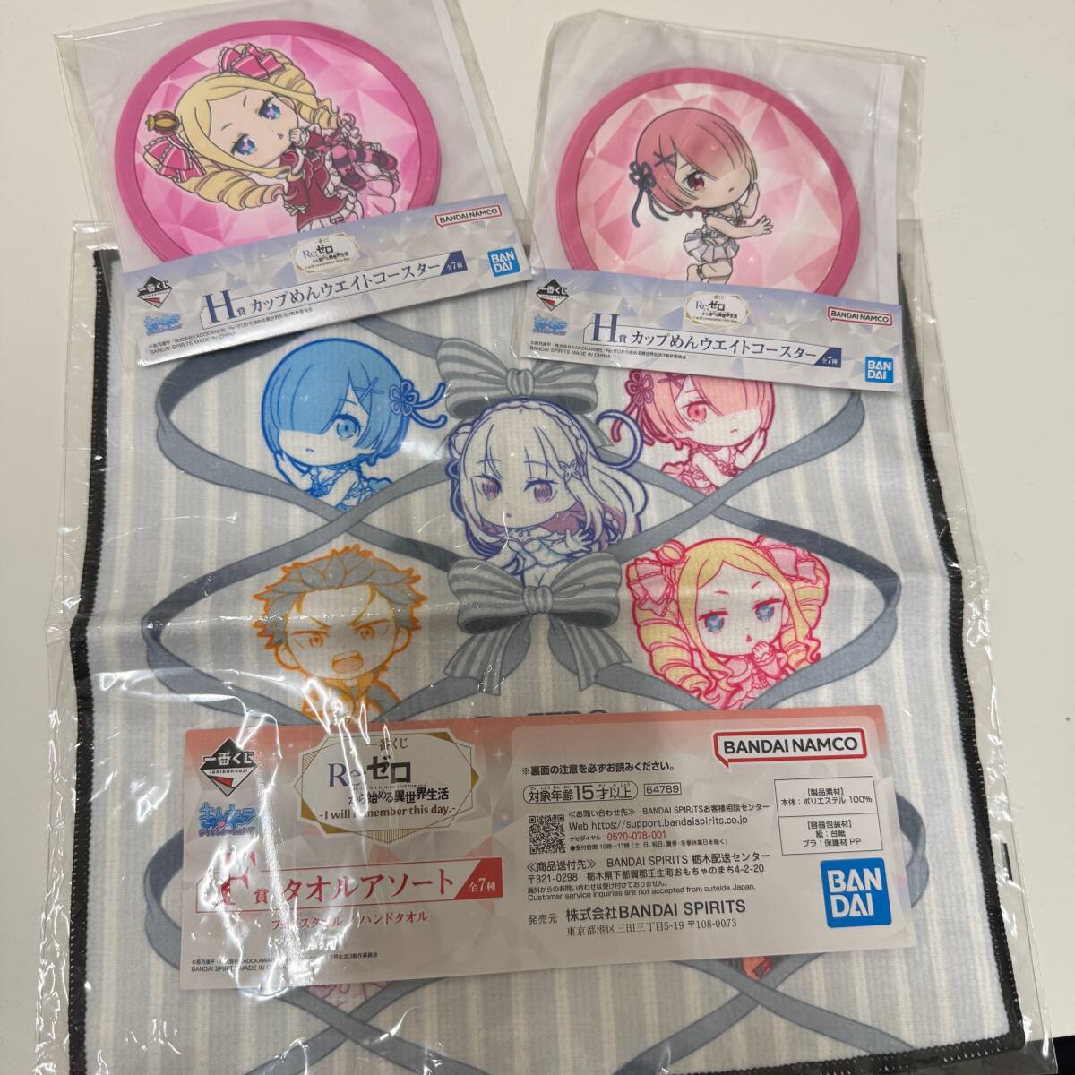 | 4969E|未開封 一番くじ Re:ゼロ F賞 タオルアソート H賞 カップめんウエイトコースター 計3点おまとめ♪ | ||