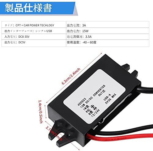 | 商品名 | Bewinner DC-DCコンバーター 12V/24VからUSB 5V 3Aへ電力変換器 ラジオ/モニター/LEDディスプレイ/扇風機用 電源降圧モジュール |
