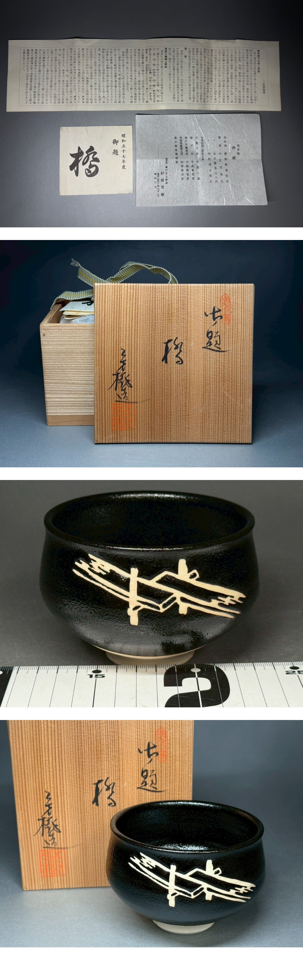 杉浦芳樹造 御題橋茶碗 茶道 抹茶茶碗 抹茶碗 和食器 骨董 置物 飾物 日本伝統工芸品 芸術 古美術 時代物 未使用 在銘 長崎買取72 收藏