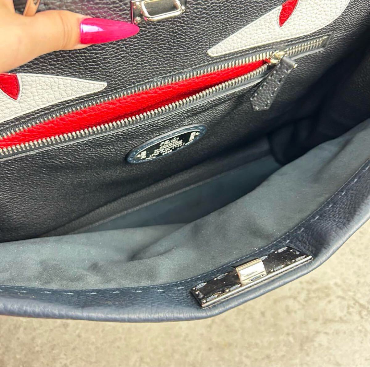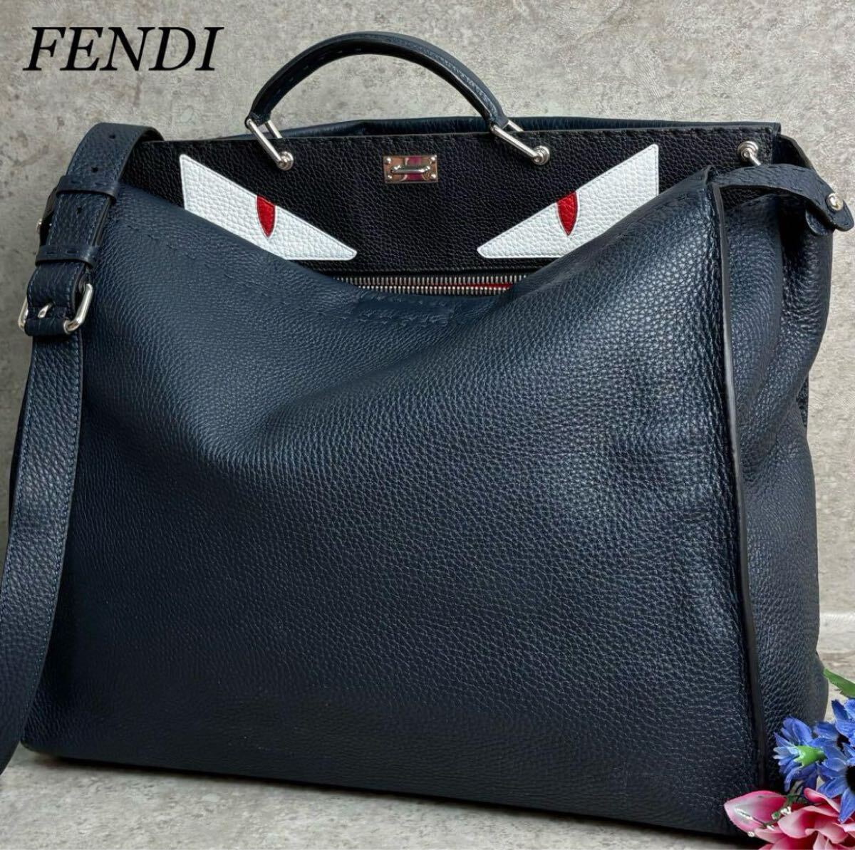 良品 FENDI 2way ピーカブー バグズ モンスター メンズ ネイビー ショルダーバッグ ビジネスバッグ フェンディ 收藏