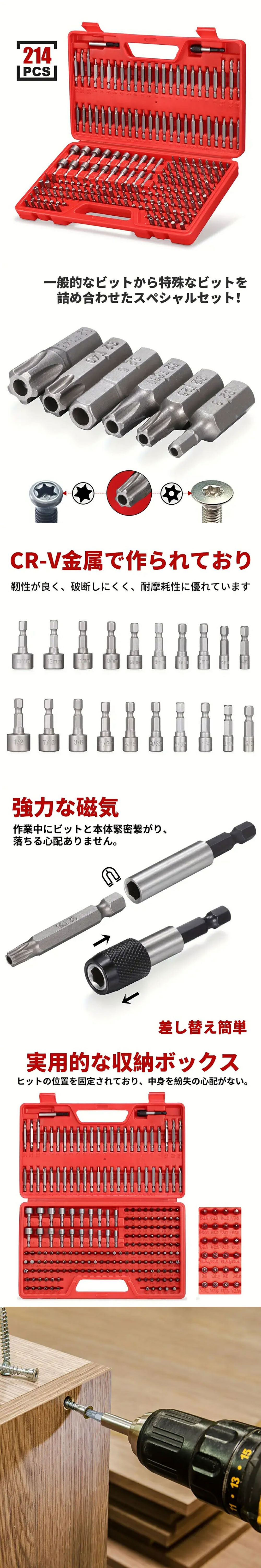 214本 セット ドライバービットセット CR-V金属 ドリルビットセット パワービットセット パワービット S2鋼製のドリルビット TETT002 收藏