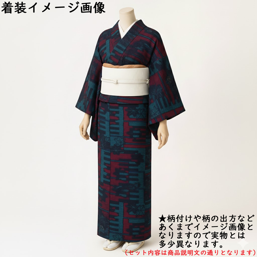 | 商品説明 | 濃紺色系の地に楓に幾何学的な模様が織られた紬です。 普段着、街歩き、お食事会、観劇、お稽古など、カジュアルなシーンに最適です。シンプルな無地の名古屋帯や、柄の色を拾ったレトロな半幅帯、モダンな染め帯など、合わせる帯次第で様々な表情が楽しめます。 | ||