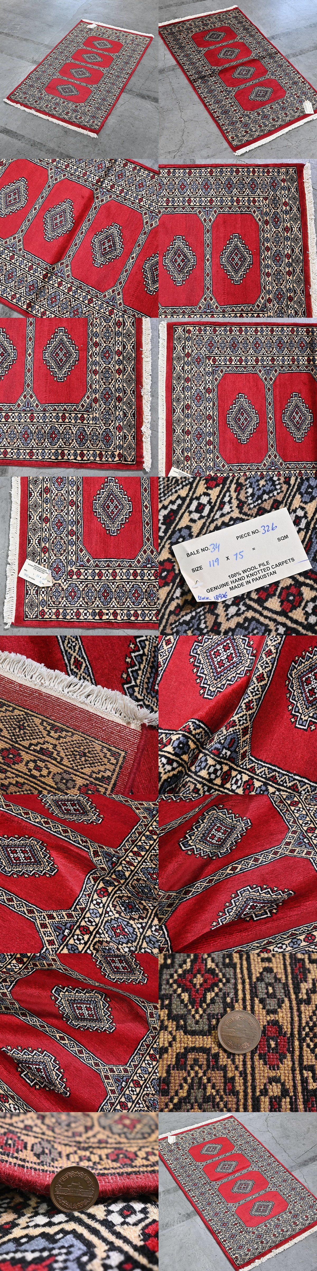 新品 未使用 パキスタン製 手織り ウール絨毯 ラグ ボハラ柄 ギュル文様 ハンドノット 羊毛 カーペット マット ホテル 応接室 P-100 收藏