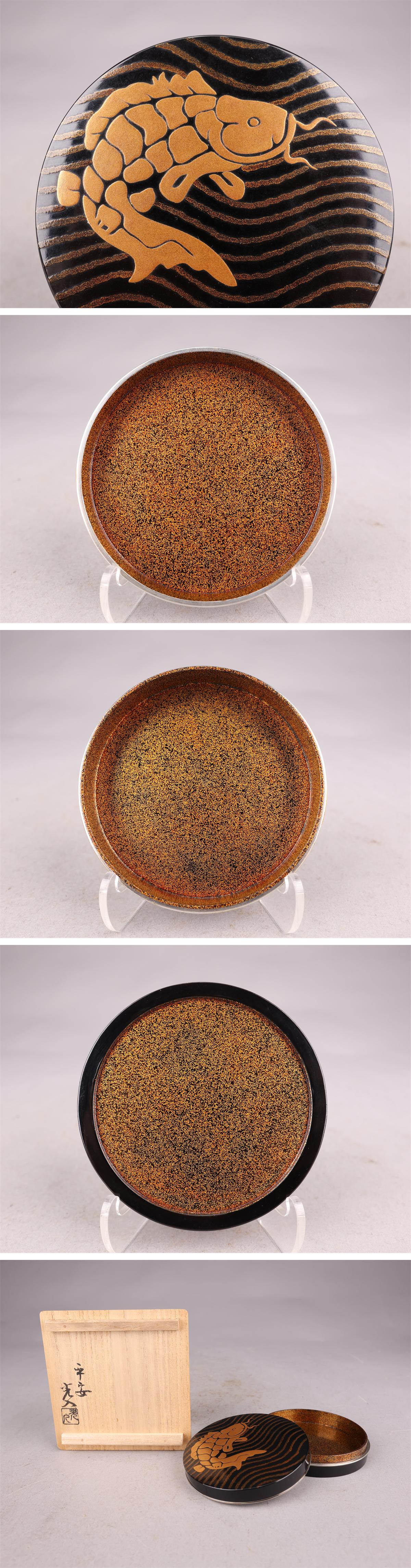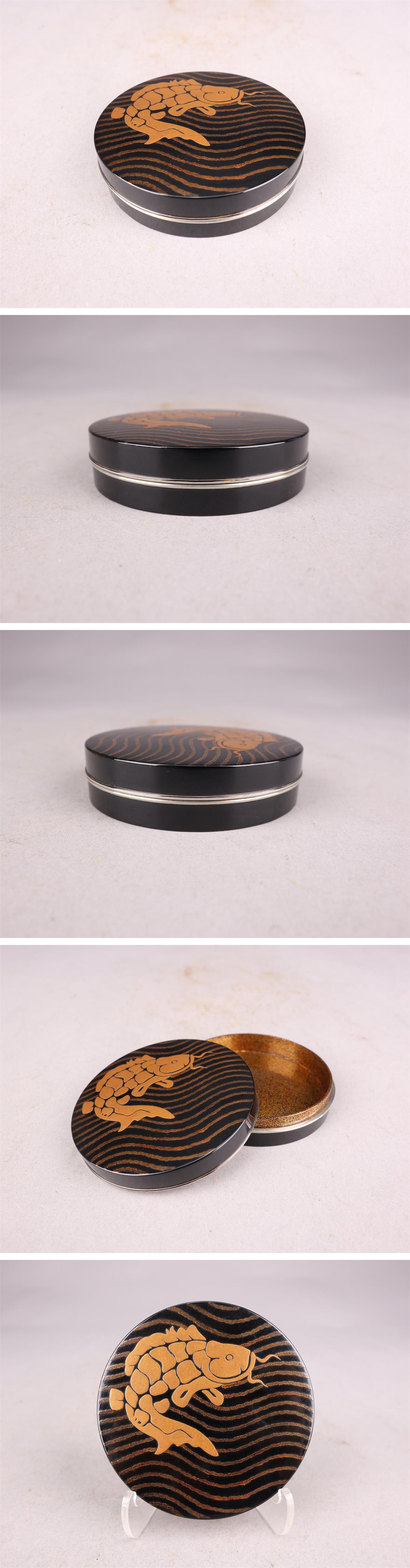 【志】A1059香合 平安 鈴木光入作 鯉文 金蒔絵 金梨地 香道具 共箱 收藏
