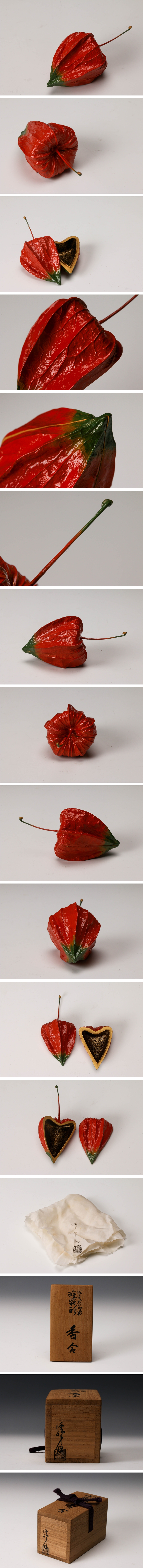 【佳香】室岡修峰 輪島乾漆塗 酸漿形香合 共箱 共布 茶道具 本物保証 收藏