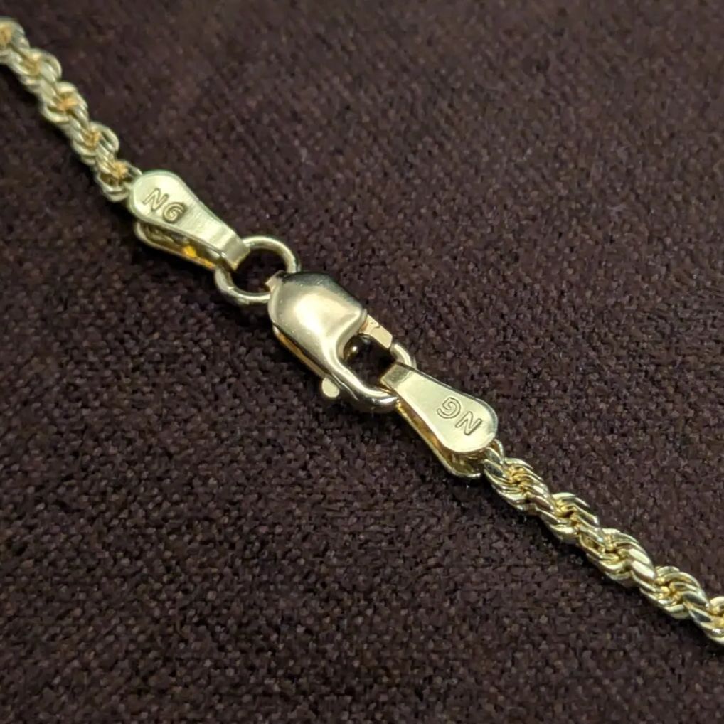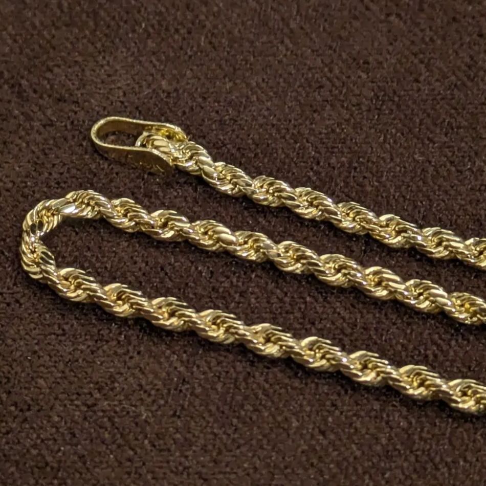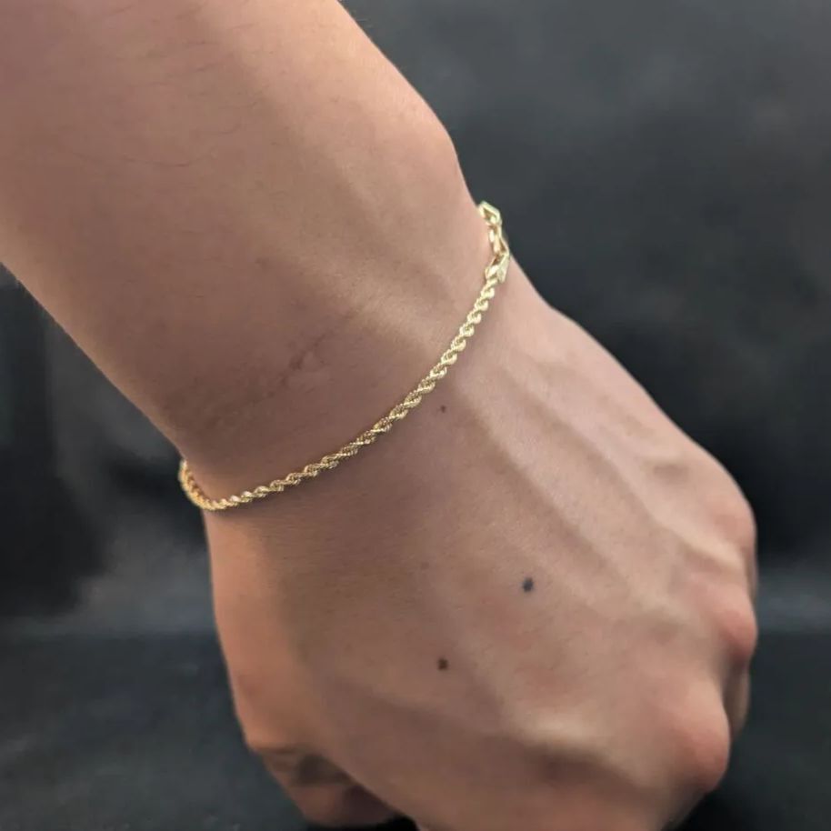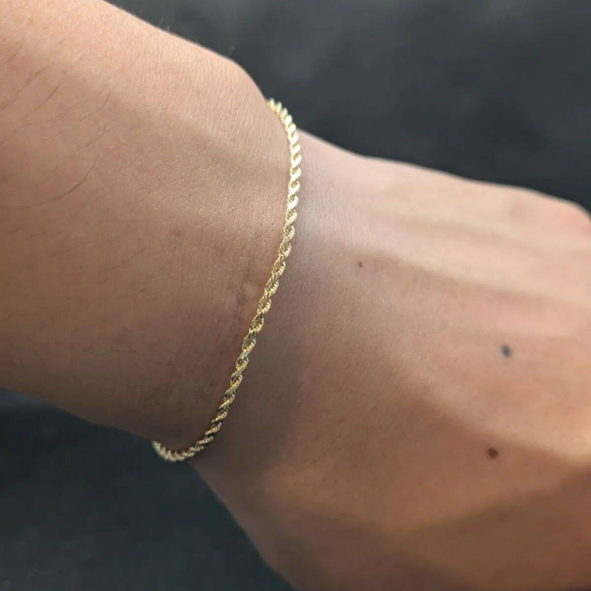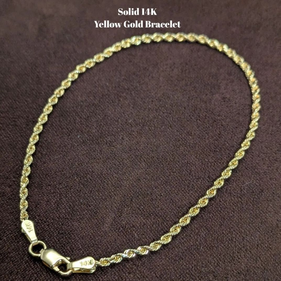 14K無垢 イエローゴールド ダイヤモンドカット ロープチェーンブレスレット 17.5cm ソリッド14金 レディース メンズ兼用 おしゃれ アクセ 收藏