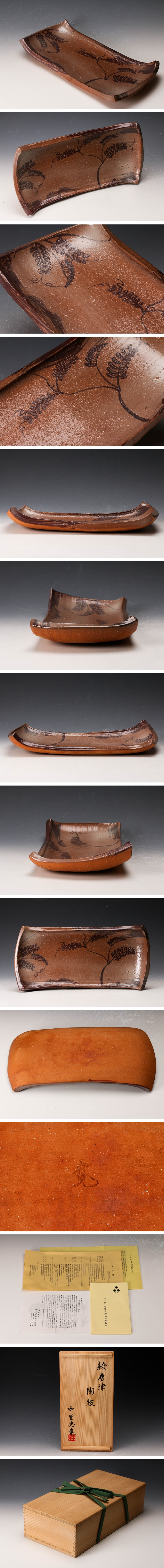 【佳香】十四代 中里太郎右衛門(中里忠寛) 幅37cm 絵唐津陶板 共箱 栞 本物保証