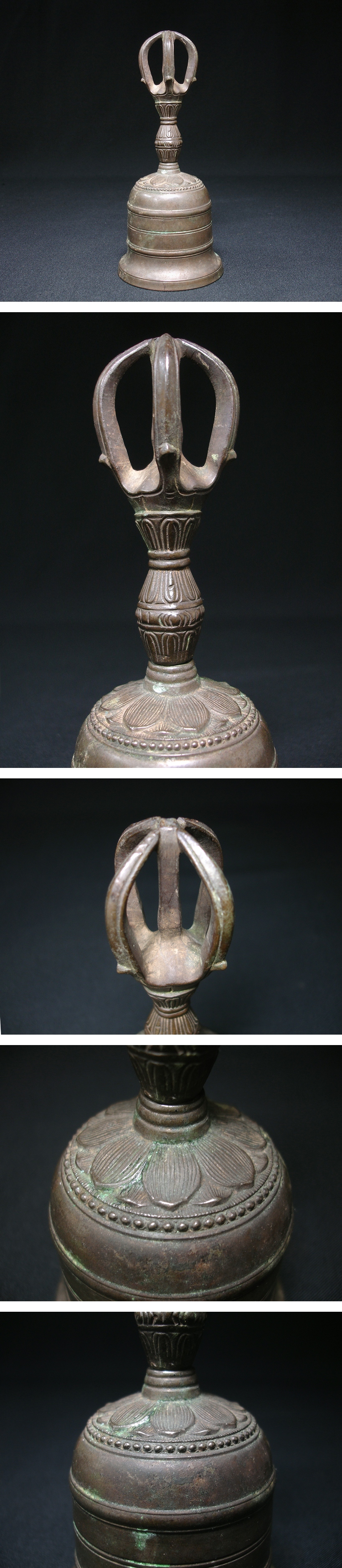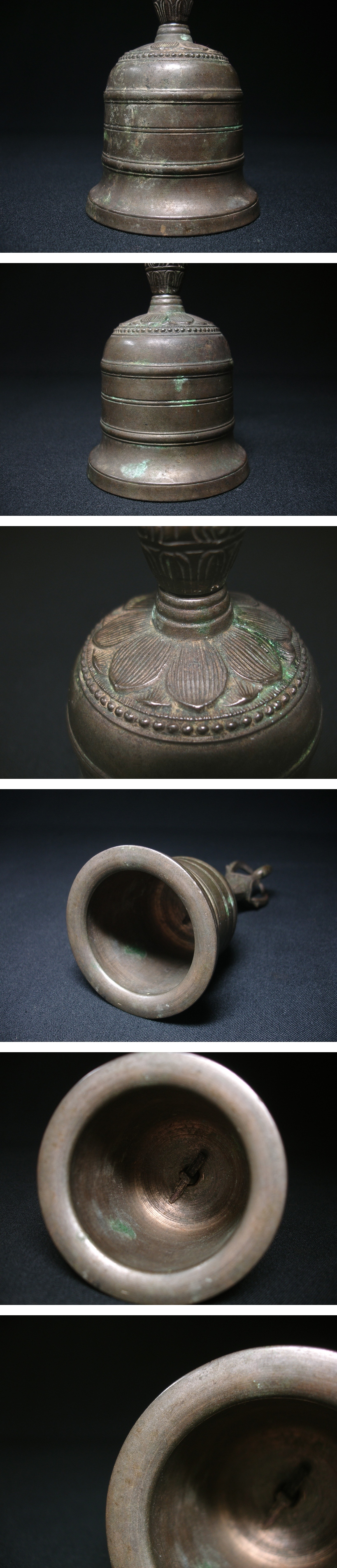 慶應◆時代仏教美術 室町時代後期 響銅五鈷鈴 金剛鈴 古銅轆轤挽 密教法具修験道持鈴 收藏