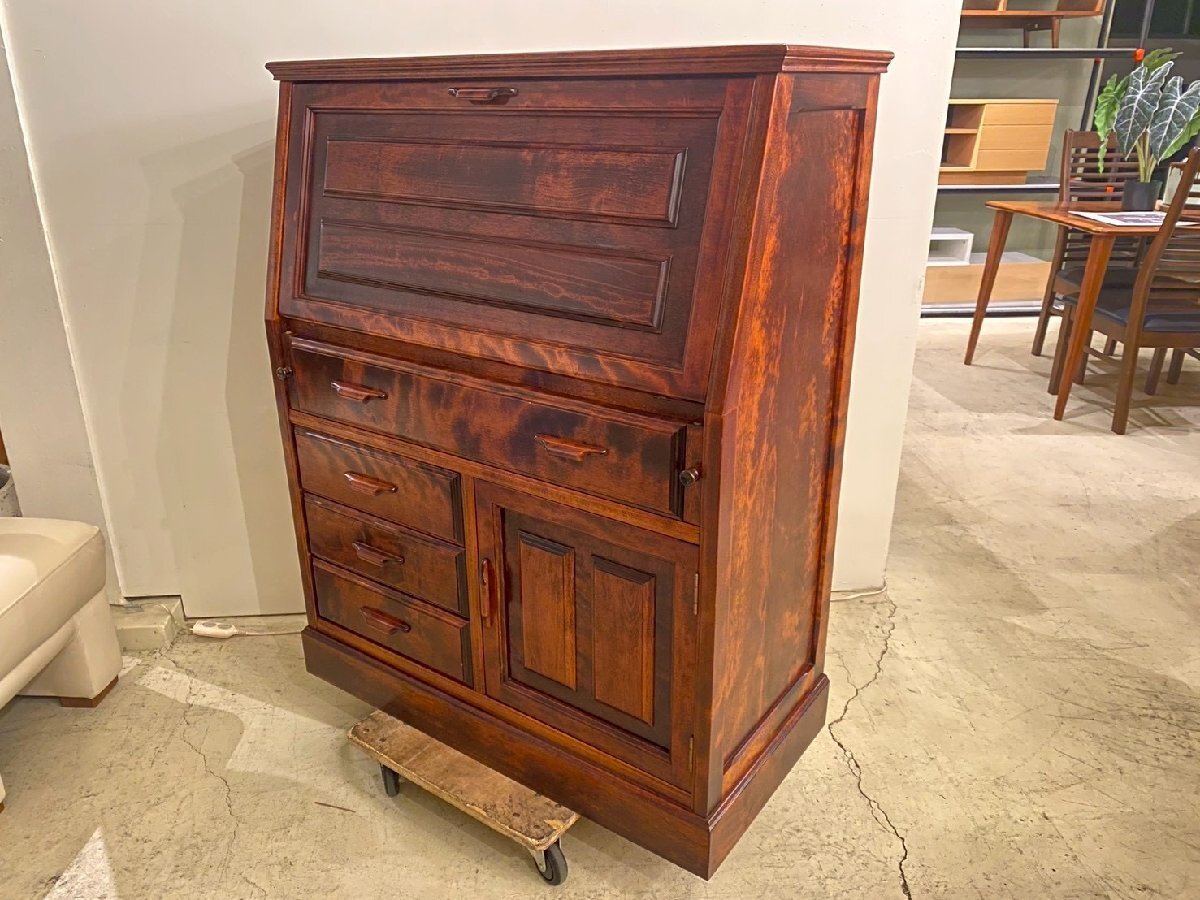 良品 ライティングビューロー デスク 書斎机 収納家具 アンティーク レトロ 和モダン 中古品 收藏