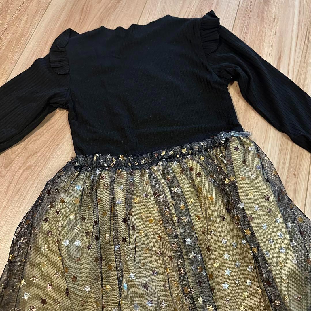 薄手のリブ素材のトップスとチュールのワンピースです。