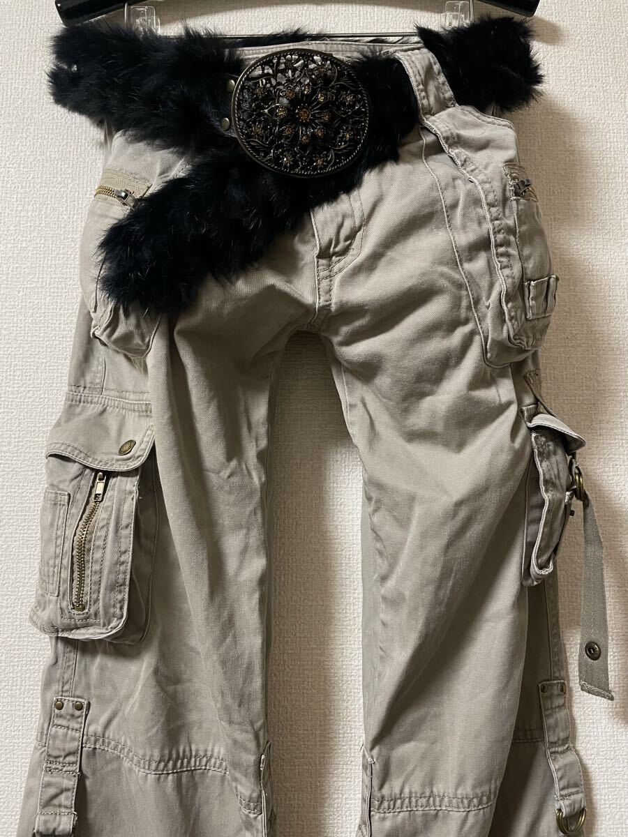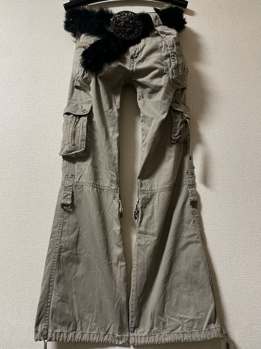archive japanese label gimmick fur belt Flare Cargo pants bell bottoms grunge 00s y2k ギミック ファー ベルト フレア カーゴパンツ 收藏