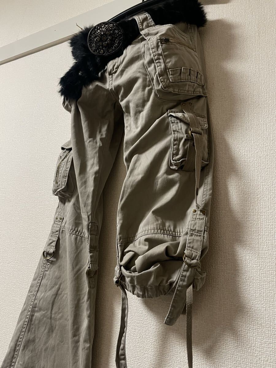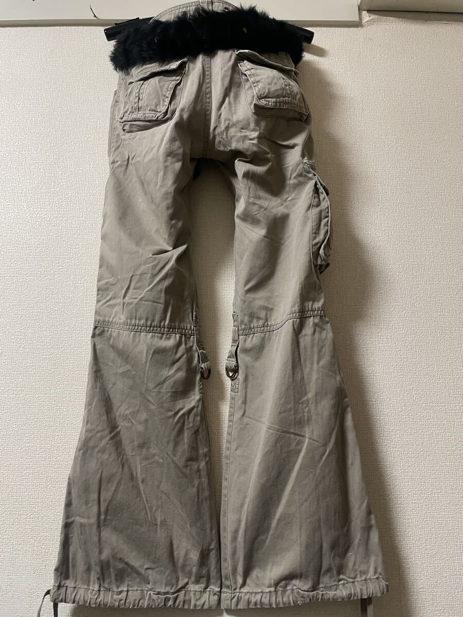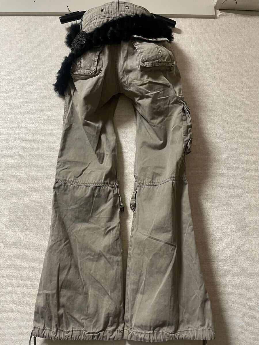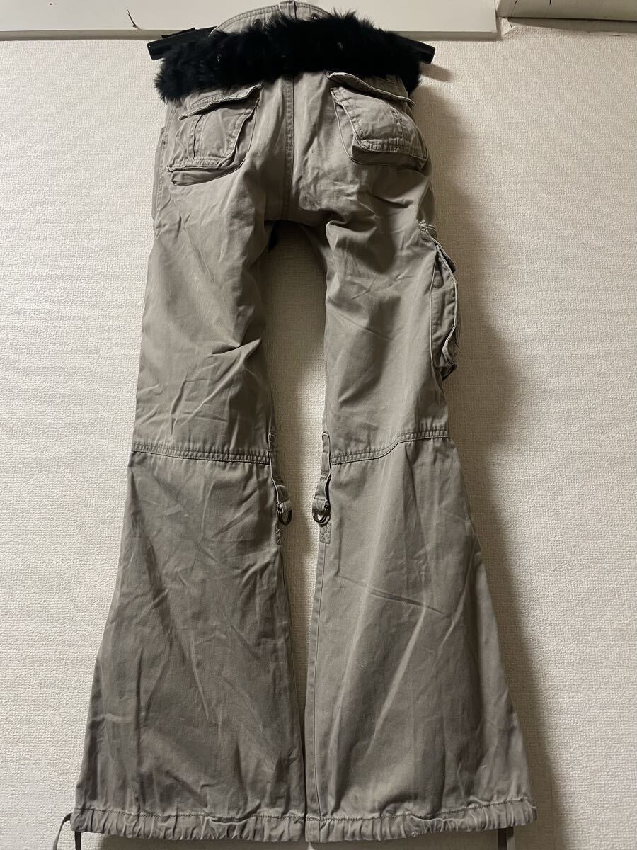 00s archive japanese label rabbit fur belt military gimmick Parachute Cargo Flare pants