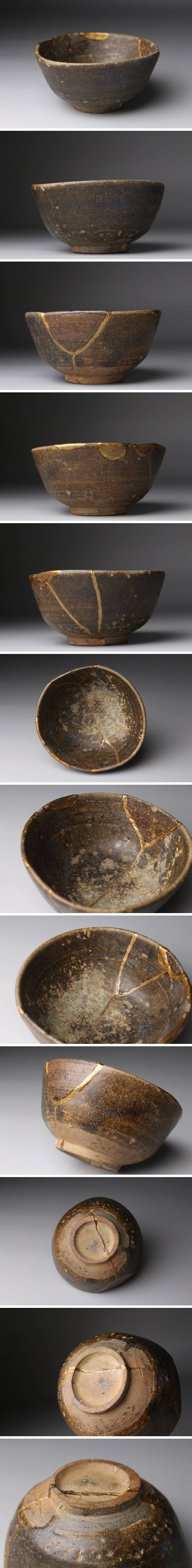 【LIG】古唐津 黒唐津 小服茶碗 金直し 呼継 飴釉 三日月高台 茶道具 九州陶器 古美術品 旧家収蔵品⑩[-P]25.06 收藏