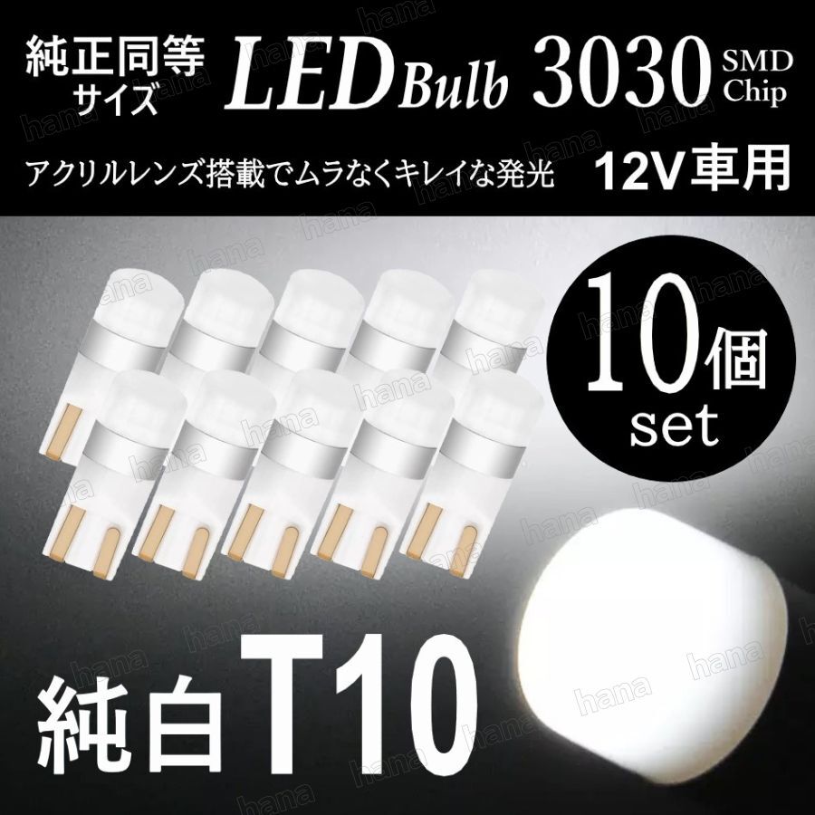 LED 純白 ホワイト バルブ 拡散レンズ T10 T16 汎用 6000K 3030SMD 12V ウェッジ球 車検対応 10個 ルームランプ ナンバー灯 收藏