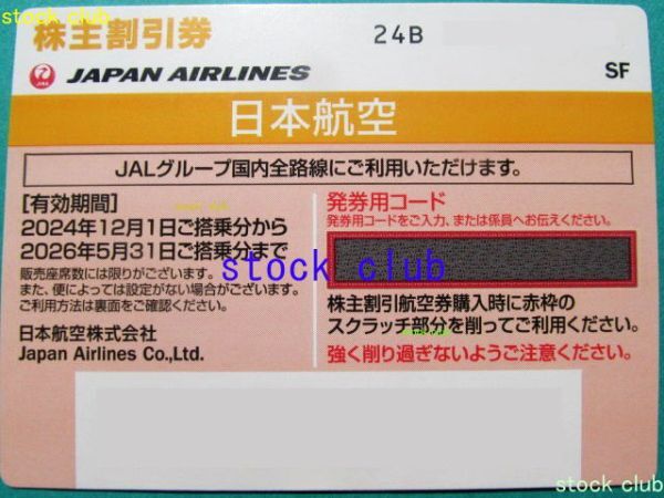 JAL 日本航空 株主優待券 1枚 番号通知 有効期限2026.5.31 コード通知 メッセージ通知 取引ナビ 收藏
