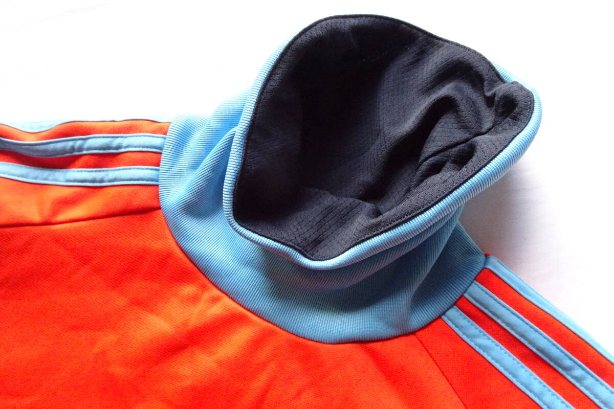 adidas/アディダス/長袖プルオーバー/表地ジャージ/裏起毛/ハイネック/サックスブルー3本ライン/朱色/紺/ネイビー/Sサイズ(10/24R7) 收藏