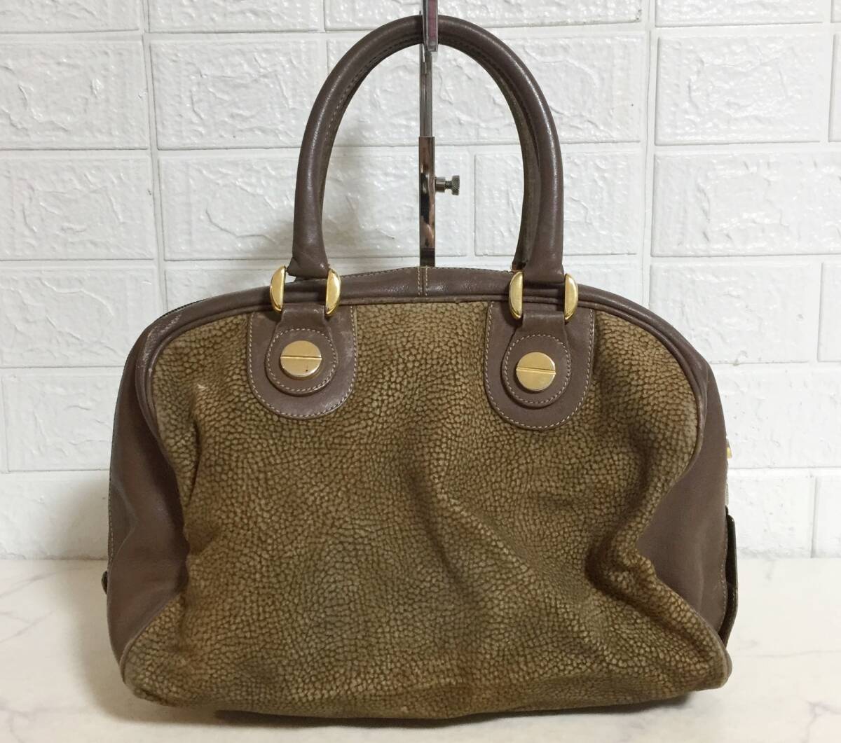no37577 BORBONESE ボルボネーゼ イタリア製 うずら柄 本革 レザー スウェード ハンド トート ミニボストン バッグ 收藏