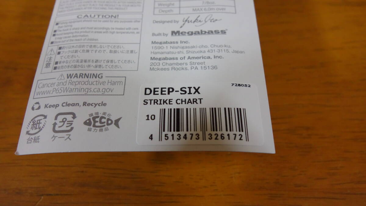 人気カラー 希少 メガバス DEEP-SIX 「ストライクチャート」未開封品 MEGABASS ディープ シックス 收藏