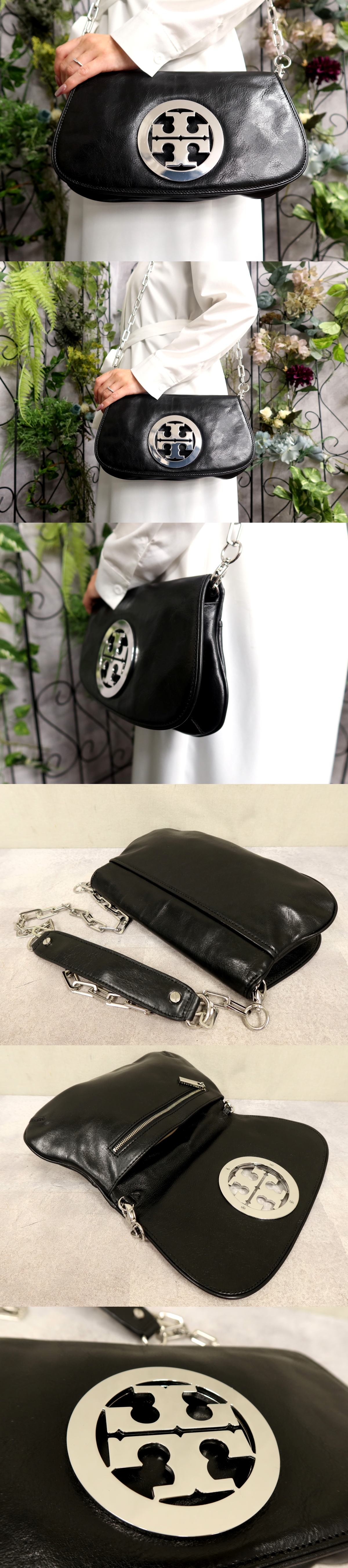 ●超美品●TORY BURCH トリーバーチ●フラップ●カーフ レザー 本革●チェーン ショルダー バッグ●黒●シルバー金具●肩掛け●Js61568 收藏