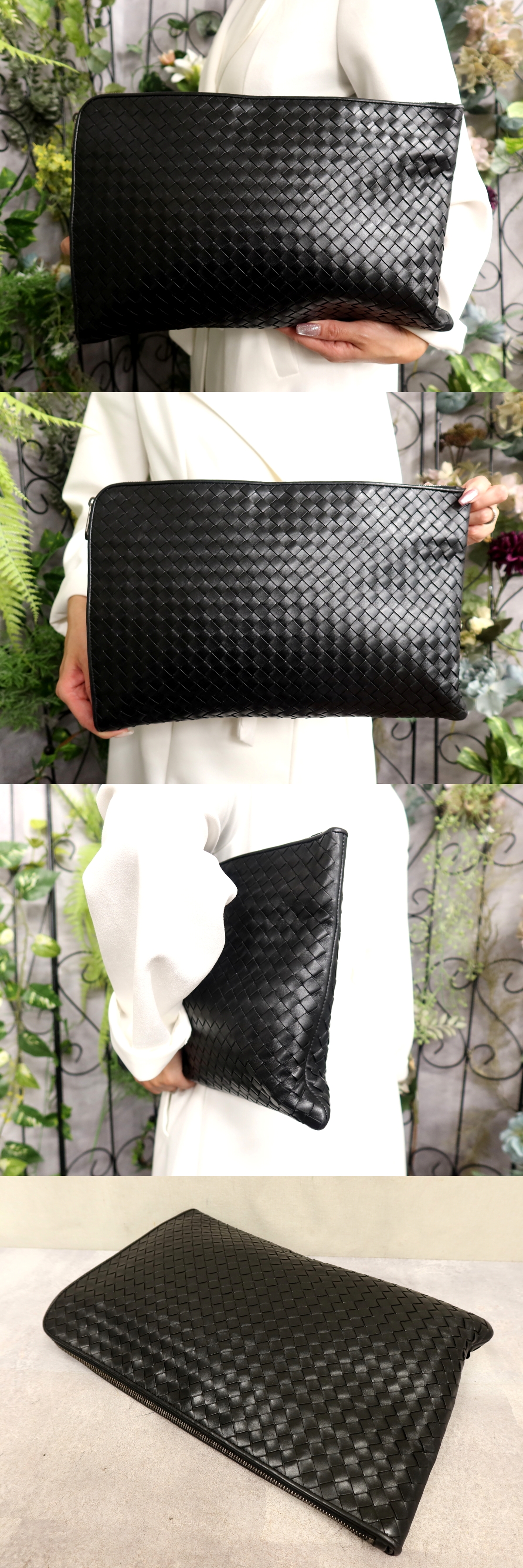 超美品●BOTTEGA VENETA ボッテガ ヴェネタ●メンズ●イントレチャート●カーフ レザー 本革●セカンド クラッチ バッグ●黒●B5●Js61712 收藏