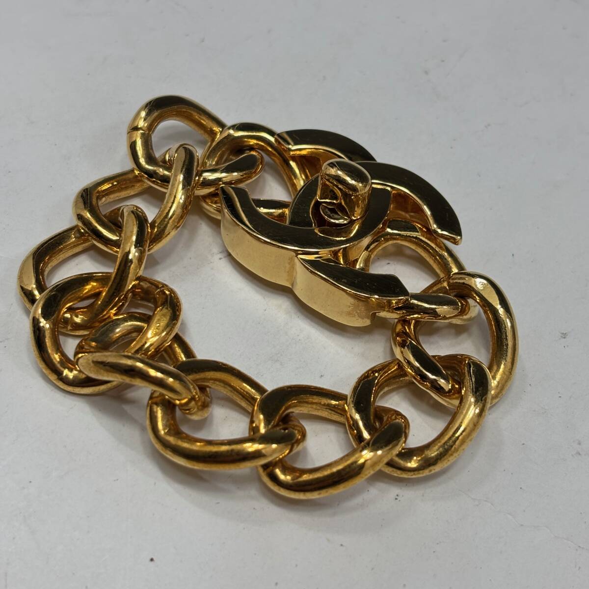 美品【シャネル/CHANEL本物】ブレスレット/ビンテージ/チェーンブレスレット/ターンロック/ココマーク/ゴールド/96A【X280M 收藏