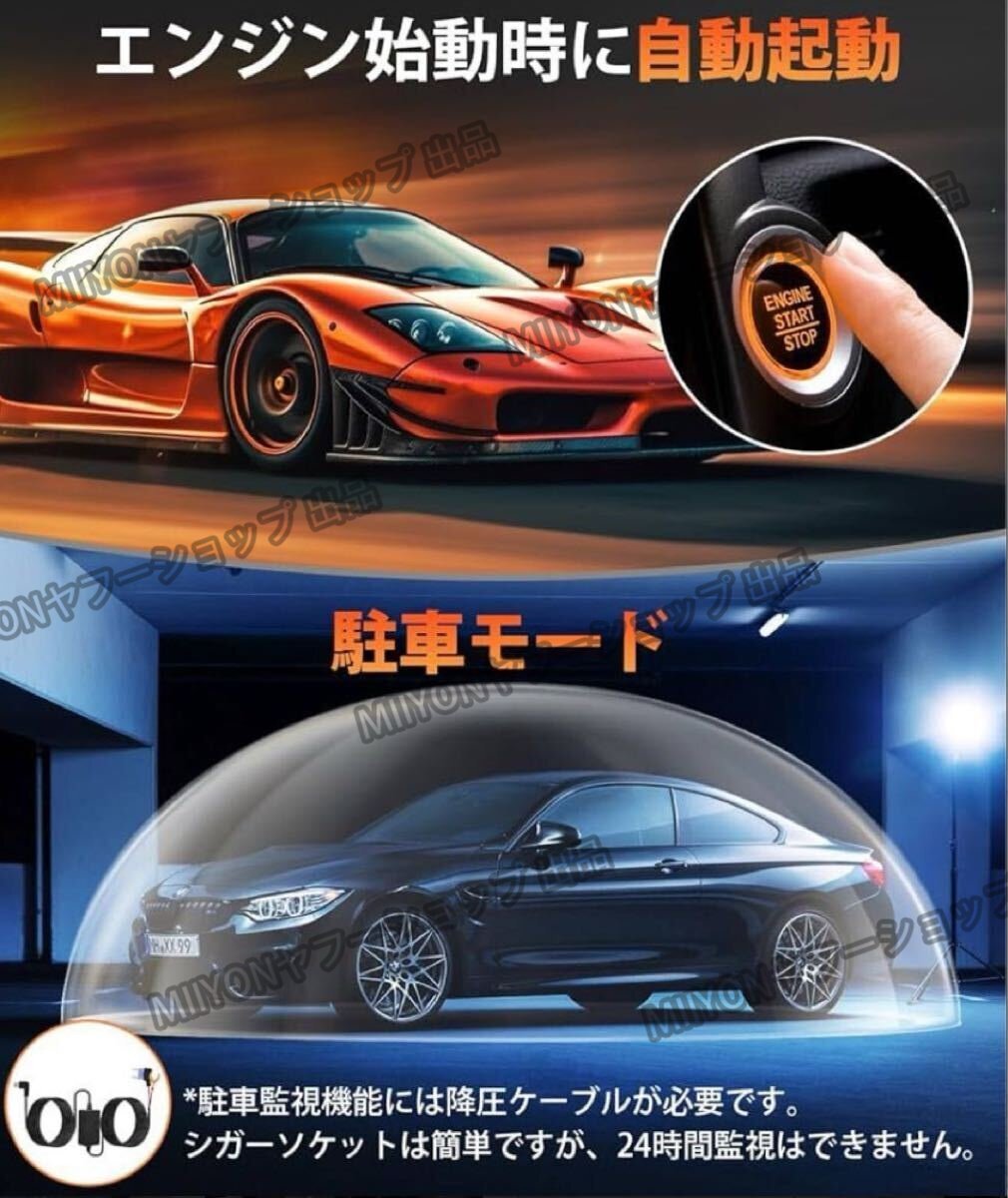 フロントカメラ1080P HD高画質で撮影でき。WDR技術により「白飛び」や「黒つぶれ」を防ぎ、逆光などで突然強い光が映像に入っても補正できます。赤外線暗視ライト機能があり、夜になっても大きな効果を発揮します。