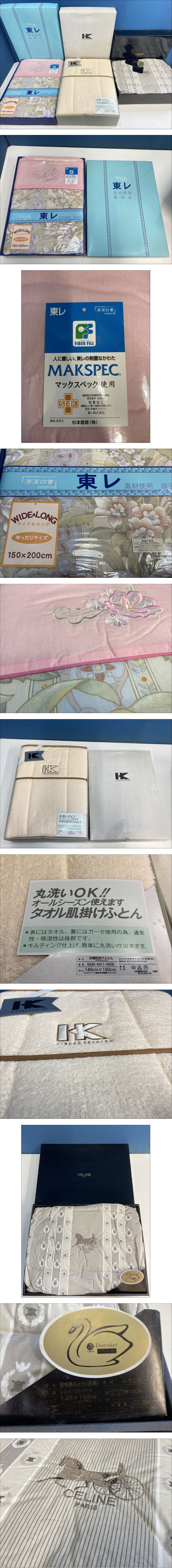 11-M13/2-140 肌掛 布団 3点 セット 東レ HIROKO KOSHINO CELINE タオル 羽毛 ダウンケット 掛け布団 ふとん 寝装品 寝具 花柄 ベージュ系 收藏