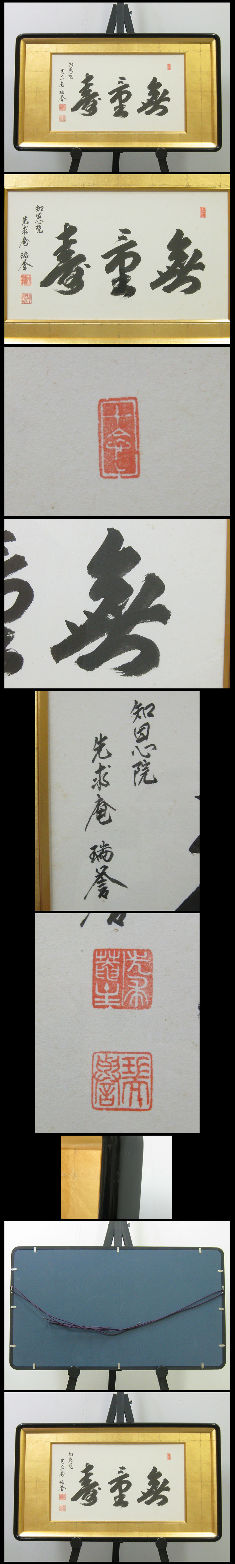 【心庵】扁額 知恩院 先求庵 奥瑞誉 書「無量寿」/肉筆 真作 B740 收藏