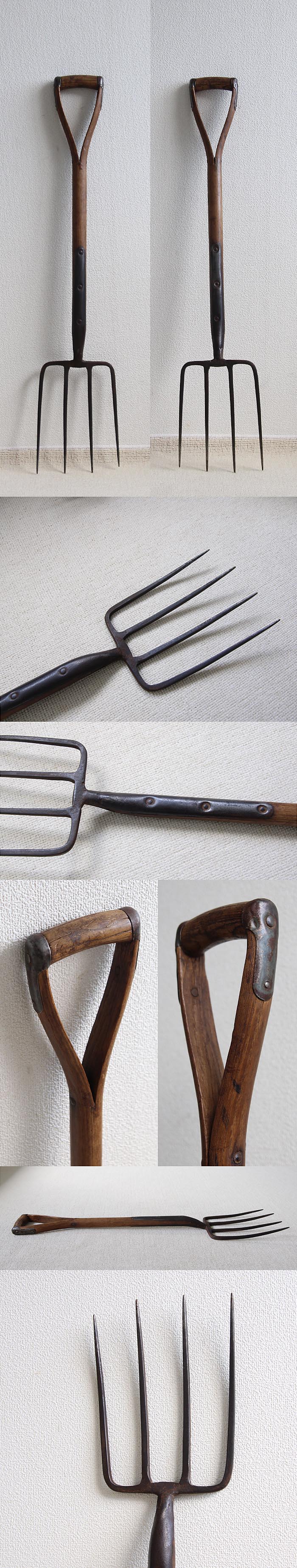 ●イギリス アンティーク ガーデンフォーク ブロカント 農具 インテリア 店舗什器 ディスプレイ ピッチフォーク 雑貨 K-922 收藏