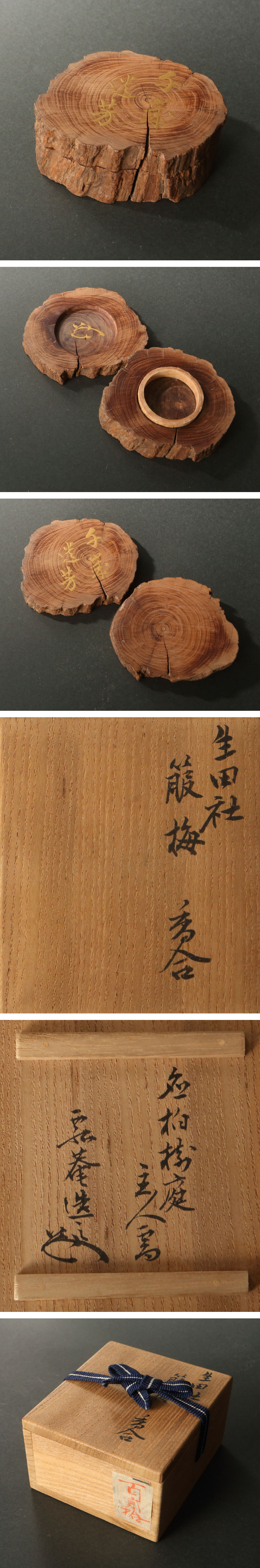 【深和】藪内休々斎 生田神社箙梅木地香合 銘「千歳遺芳」応柏樹庭主人需 共箱 保証品(茶道具 藪内流 手造香合 神戸 柏木庄兵衛 数寄者) 收藏