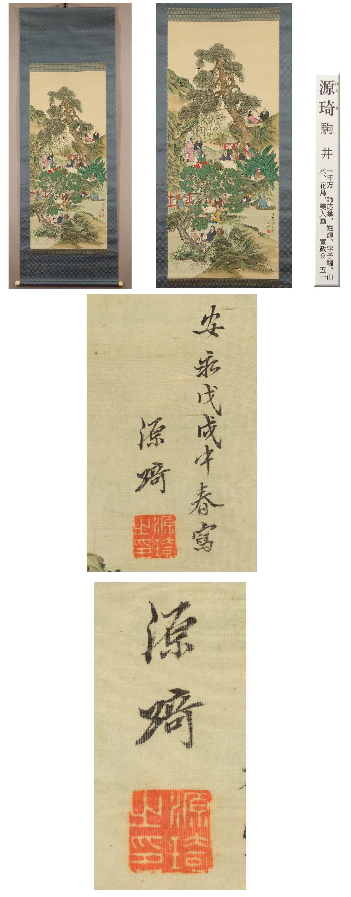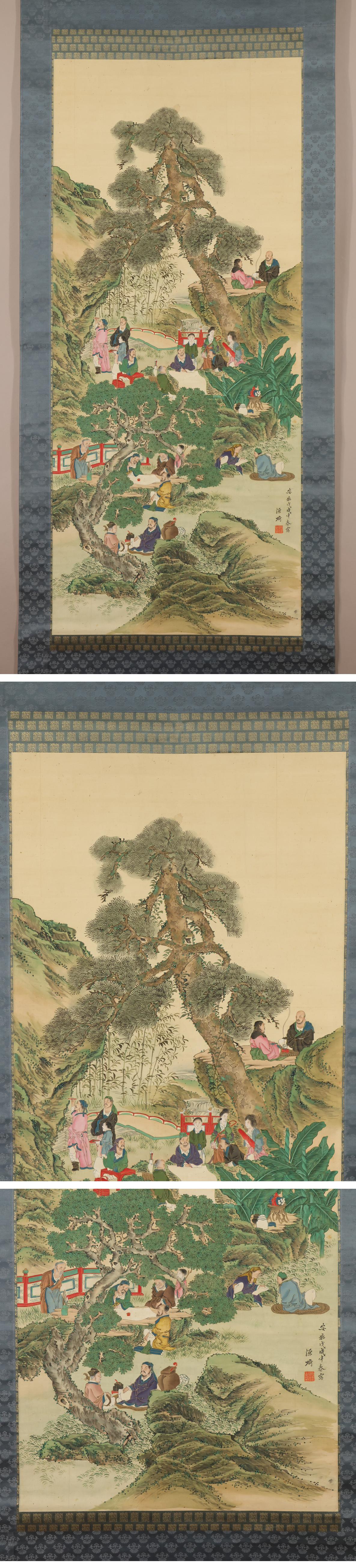 【真作】駒井源琦◆西園雅集図◆応挙門下十哲の一人◆肉筆◆絹本◆掛軸◆x161 收藏