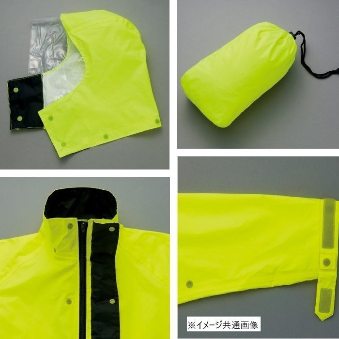 | 雨を防いでムレも防ぐ、快適仕様のレインスーツです。新たなプラス機能としてフード(透明部分)の視界が広くなり、腕まくり調整ボタンが付きました。また袖の内側をマイクロメッシュに変え、パンツ裾に絞り調整テープが付きました。 ※耐水圧・10000mmH2O、透湿度2000g/m?/24hrsです。 ※透湿防水性があります。 |