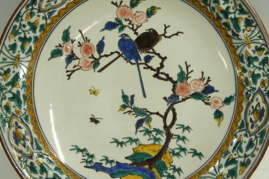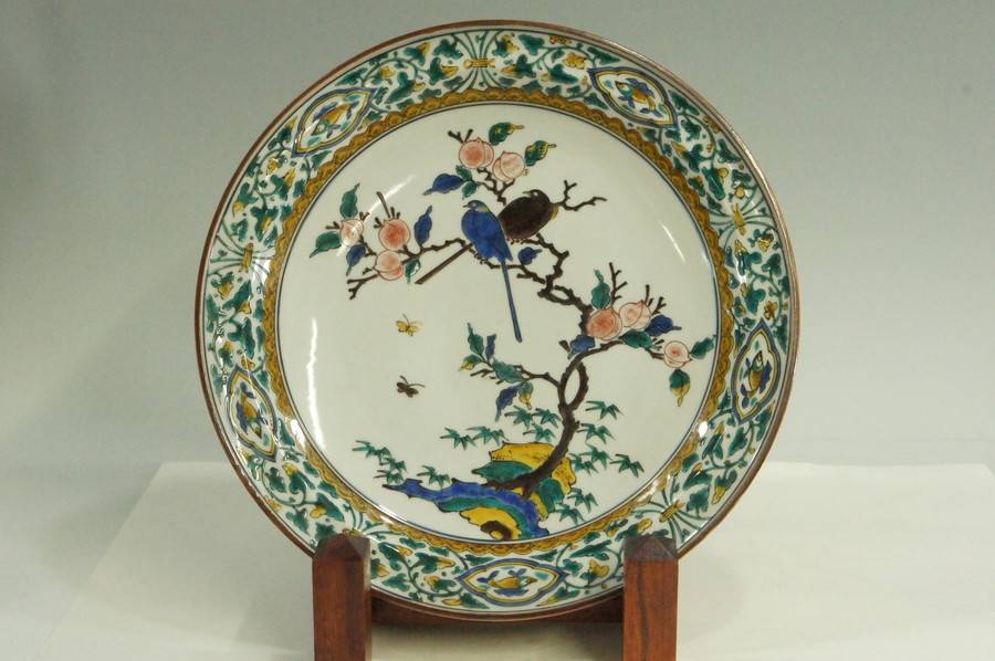 ●九谷焼 古九谷写 色絵大皿 花鳥唐草文